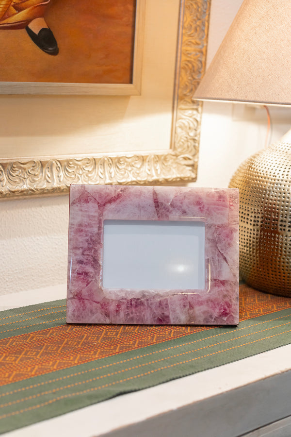 This elegant natural rose quartz photo frame is a beautiful blend of nature’s charm and refined craftsmanship. Made from genuine rose quartz, the frame features soft pink tones and natural crystal patterns, making each piece uniquely graceful. Known as the stone of love and harmony, rose quartz is believed to attract positive energy, warmth, and emotional balance.